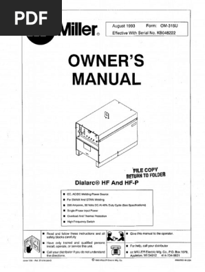 Miller Dialarc Hf Owner S Manual Pdf Download Manualslib